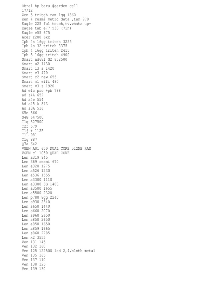 Daftar Harga Hp Di Garden Cell Kediri 2020 Daftar Ini